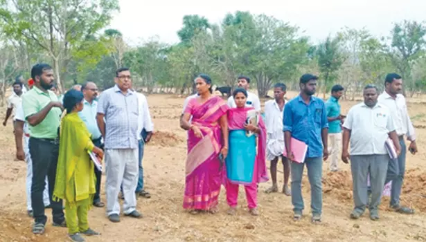 கூனான்டியூர் கிராமத்தில் தரிசு நிலத் தொகுப்பில் மா செடிகள் பயிரிடப்பட்டுள்ளதை கலெக்டர் கார்மேகம் ஆய்வு மேற்கொண்டார். அருகில் தோட்டக்கலைத் துறை துணை இயக்குநர் தமிழ்செல்வி, உதவி இயக்குநர்கள் குமரவேல், ஸ்ரீயமுனா உள்ளனர்.