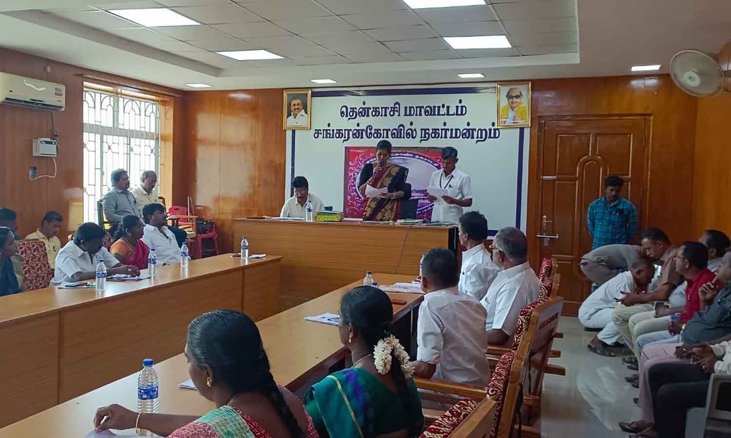சங்கரன்கோவில் நகராட்சி தலைவர் உமாமகேஸ்வரி தலைமையில் நகராட்சி கூட்டம் நடந்தபோது எடுத்தபடம்.