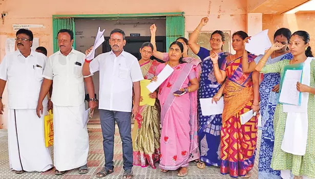 கவுன்சிலர்கள் ஆர்ப்பாட்டத்தில் ஈடுபட்ட காட்சி.
