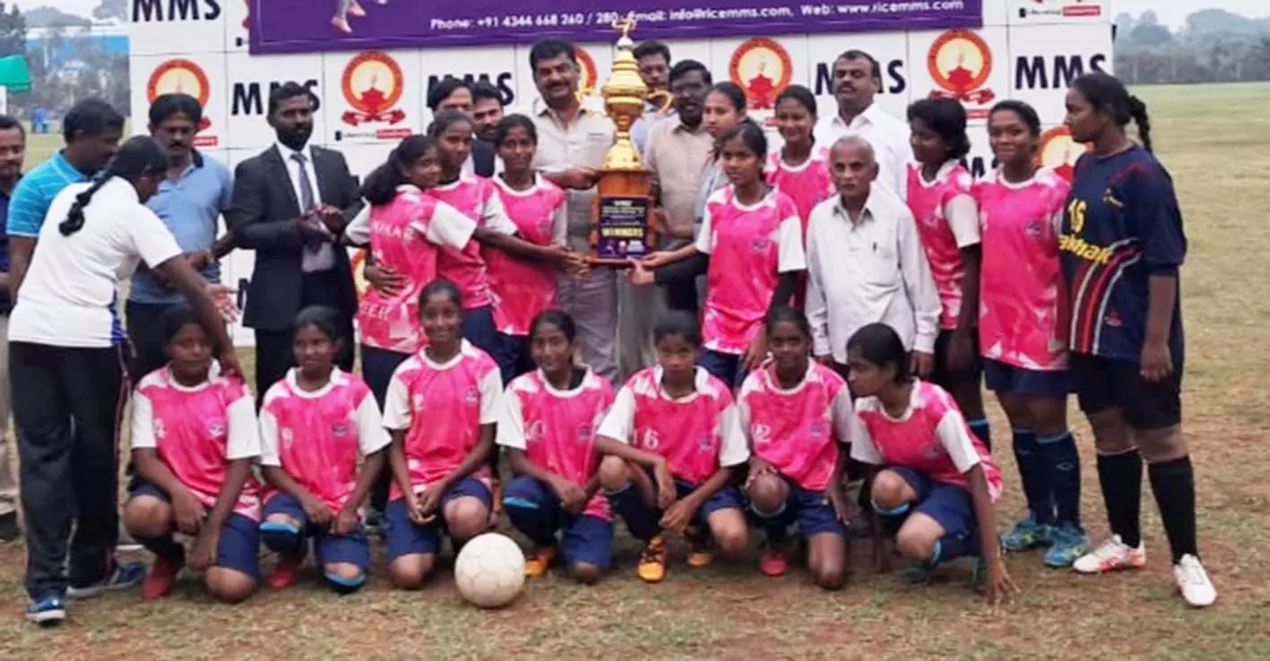 ஓசூர் அருகே சி.பி.எஸ்.சி. பள்ளிகளுக்கிடையே மாணவிகளுக்கான கால்பந்து போட்டி