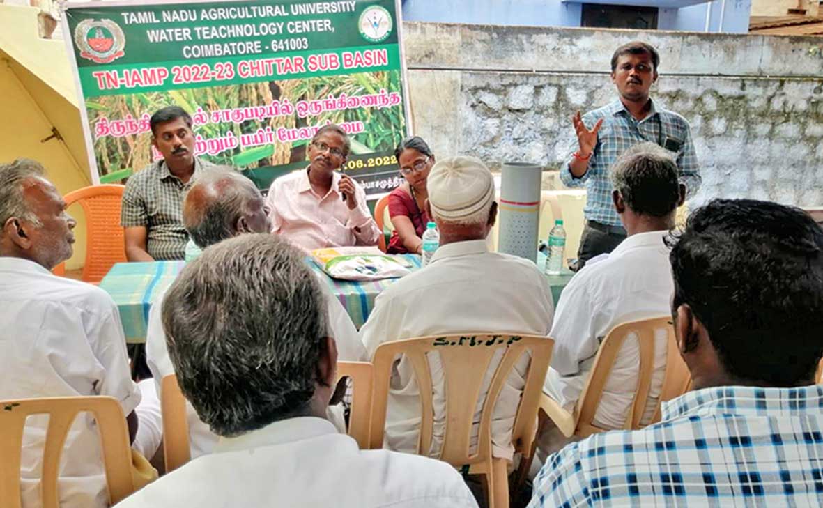 தமிழ்நாடு வேளாண்மைப் பல்கலைக்கழகத்தில் உலக வங்கியின் நிதியுதவியுடன் இயங்கும் நீர்வள நிலவள திட்டத்தின் சிற்றாறு பாசன பகுதியான பண்பொழி கிராமத்தில் விவசாயிகளுக்கு பயிர் மேலாண்மை பயிற்சி நடைபெற்றது.