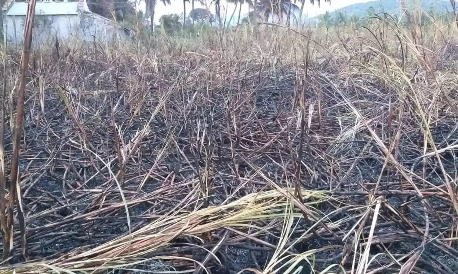தீ விபத்தில் எரிந்து சாம்பலான கரும்புகள்.