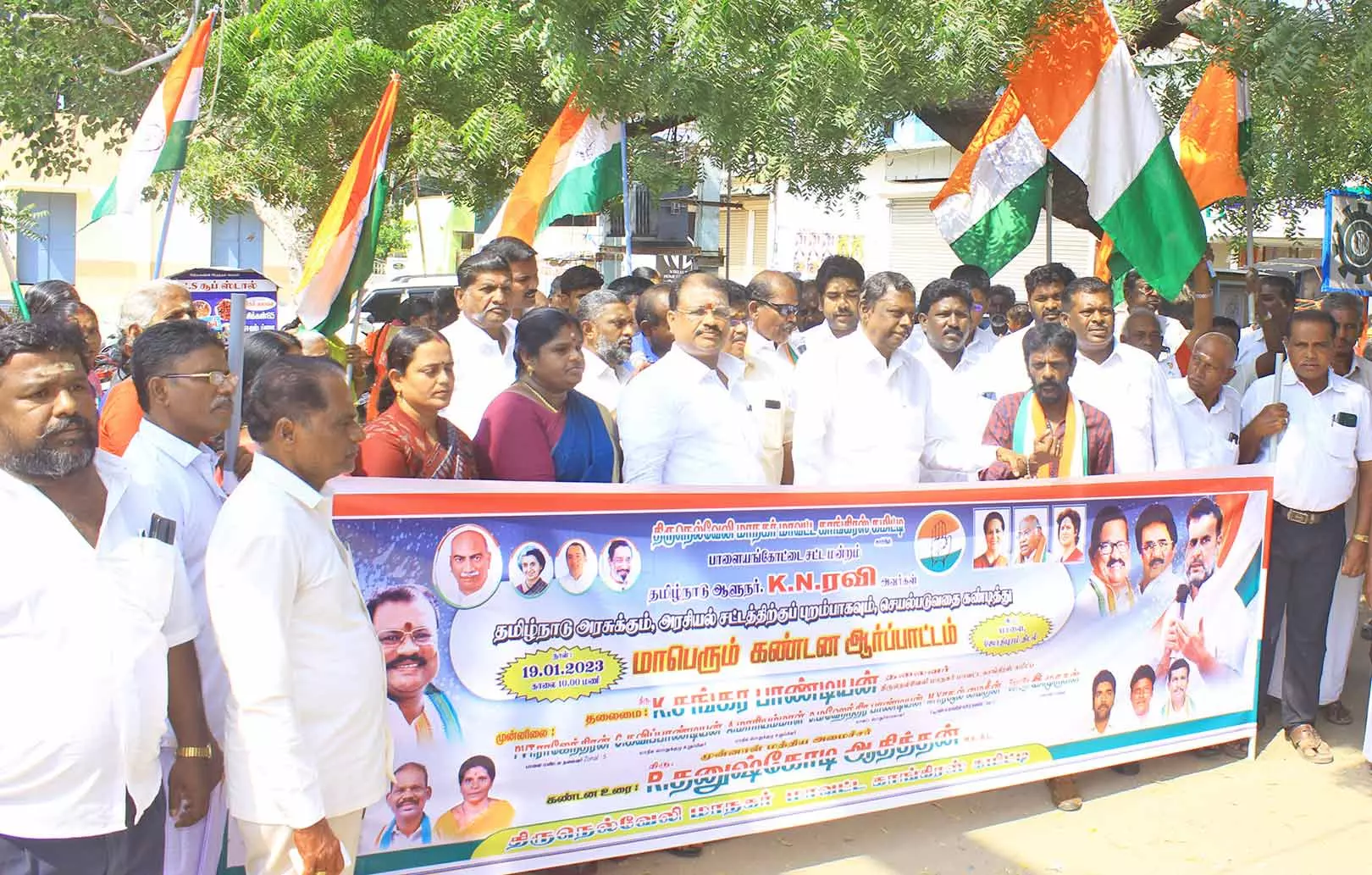 பாளையில் தமிழக ஆளுநரை கண்டித்து காங்கிரஸ் சார்பில் ஆர்ப்பாட்டம்