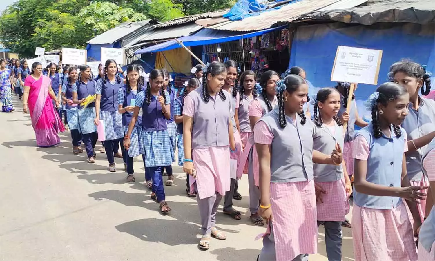 - மாணவர்கள் விழிப்புணர்வு பதாகைகளை ஏந்திய வண்ணம் ஊர்வலமாக சென்றனர்.