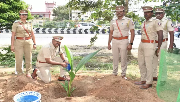- அதனைத் தொடர்ந்து போலீஸ் ஸ்டேஷன் வளாகத்தில் மரக்கன்றுகளை நட்டார்.