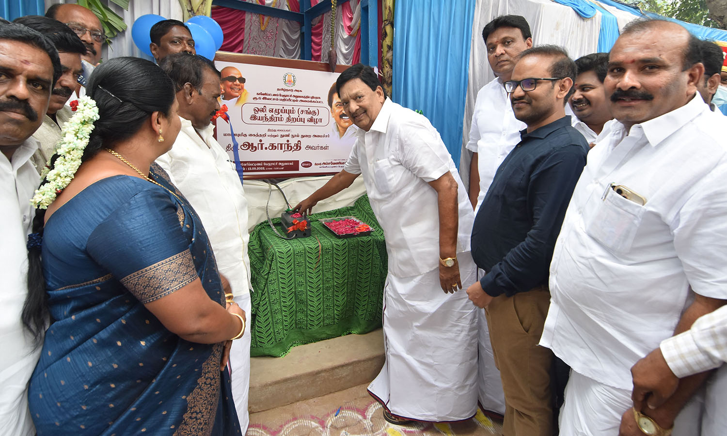 தொடர்ந்து காவே ரிப்பட்டணம் பேரூராட்சி அலுவலகத்தில் ரூ.6 லட்சம் மதிப்பில் புதுப்பிக்கப்பட்ட ஒலி எழுப்பும் (சங்கு) எந்திரத்தை மக்கள் பயன்பாட்டிற்கு அமைச்சர் தொடங்கி வைத்தார்.