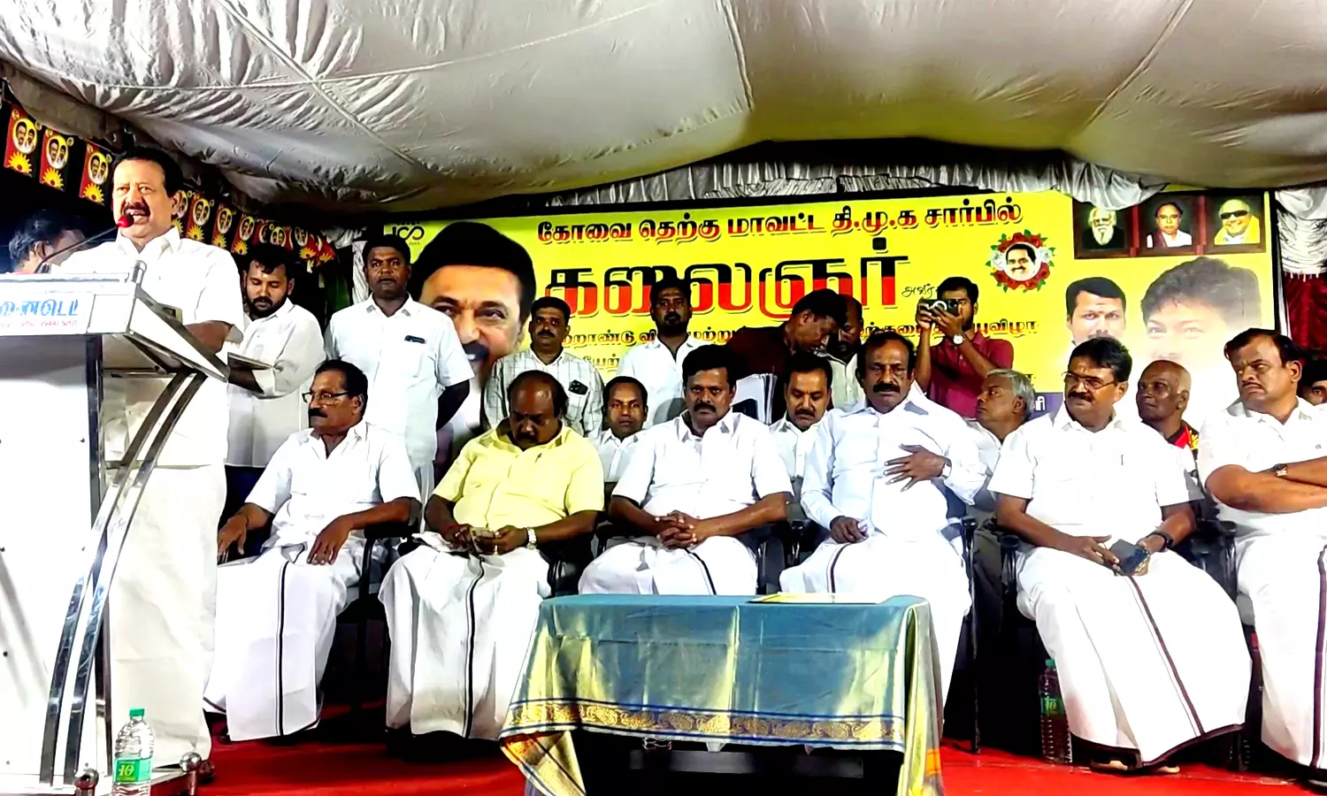 சிறப்பு விருந்தினர்களாக அமைச்சர்கள் முத்துசாமி, பொன்முடி ஆகியோர் பங்கேற்று பேசினர். சூலூர் வடக்கு ஒன்றிய தி.மு.க செயலாளர் அன்பரசு அனைவரையும் வரவேற்றார்.
