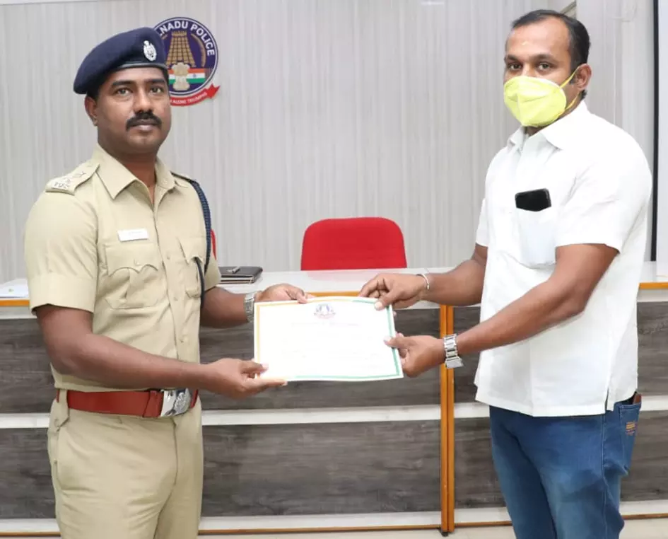 ஈரோடு மாவட்டத்தில் குற்ற தடுப்பு, துப்பு துலக்குதல், குற்ற நடவடிக்கைகளில் ஈடுபடுவோரை கைது செய்தல், சட்டம் ஒழுங்கு நிலை நாட்டும் நடவடி க்கையில் ஈடுபடுவோரை ஊக்கப்படுத்தும் வகையில் நற்சான்றிதழ் வழங்கப்பட்டு வருகிறது.