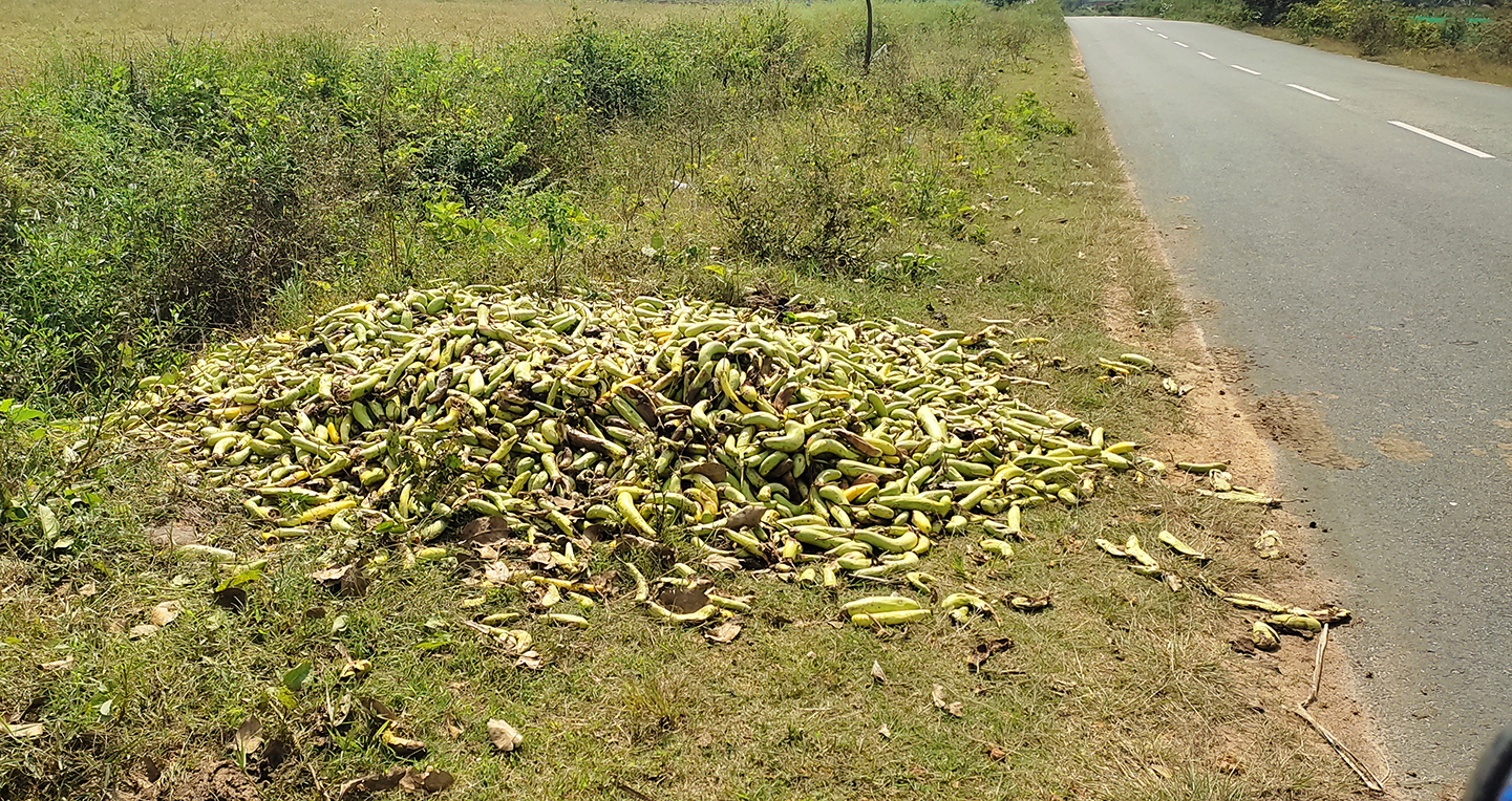 விலை வீழ்ச்சியால் கத்தரிக்காய்களை சாலையோரம் வீசும் அவலம்