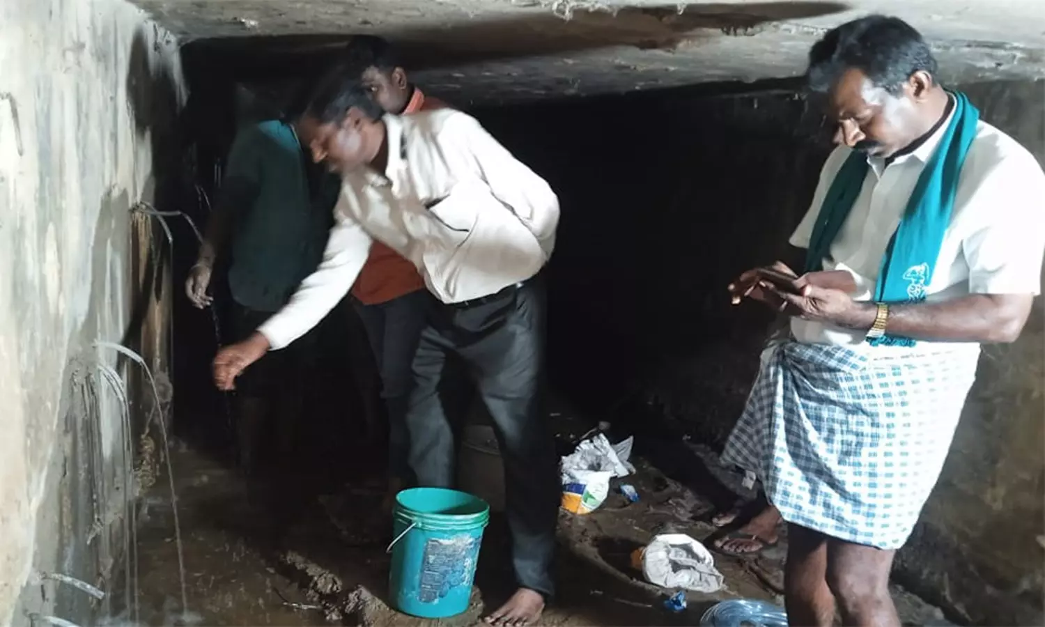 - காங்கிரீட் தளத்தில் விரிசல் ஏற்பட்டு தண்ணீர் வெளியேறியது.