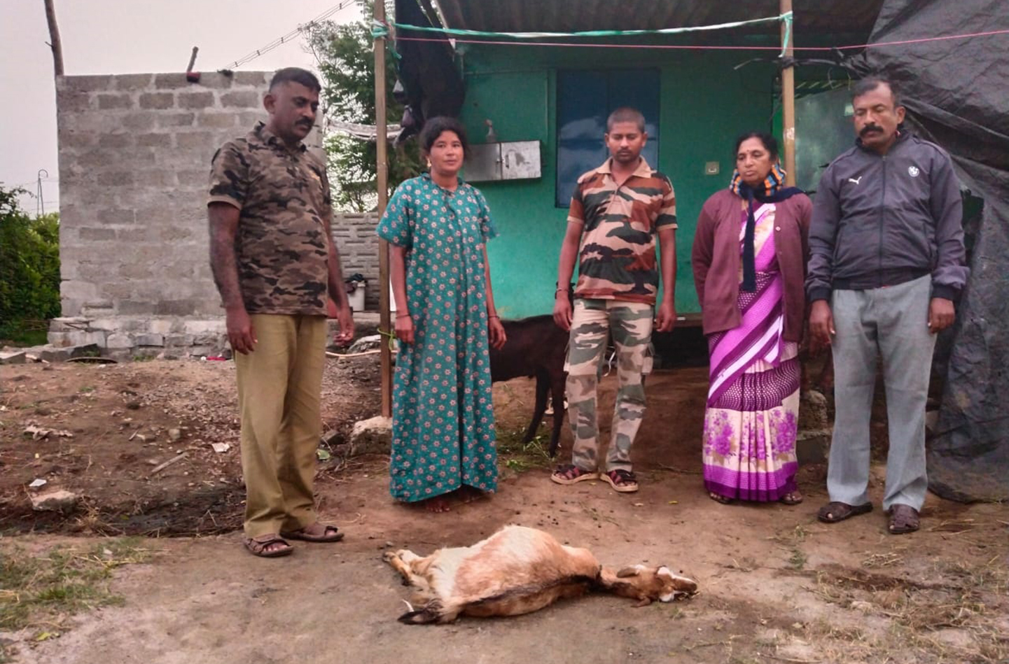 - மகாலட்சுமி வீட்டின் முன்பு கட்டியிருந்த ஆட்டுக்குட்டி ஒன்று கழுத்தில் ரத்த காயத்துடன் இறந்து கிடப்பதை பார்த்து அதிர்ச்சி அடைந்தார்.