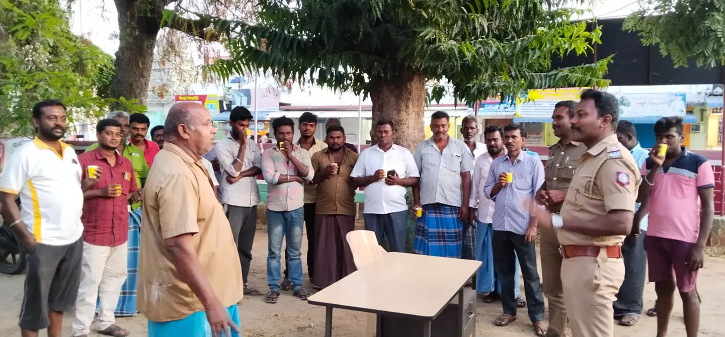 - அந்தியூரில் போலீஸ் சப்-இன்ஸ்பெக்டர் கார்த்தி தலைமையில் தேநீர் விருந்து கொடுத்து கவுரவிக்கப்பட்டது.