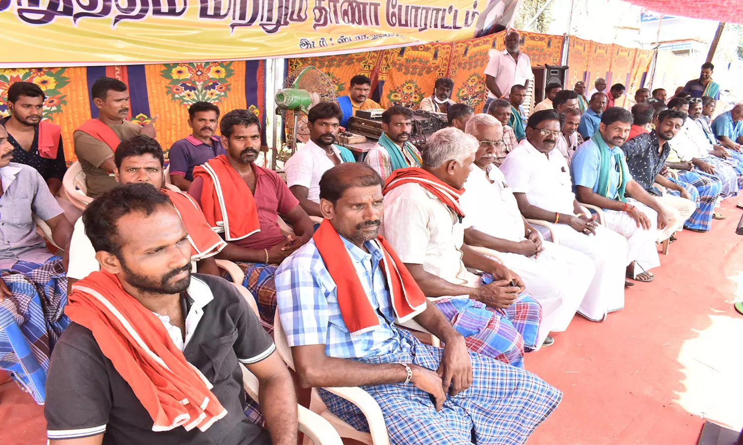 இன்று ஸ்டார் தியேட்டர் அருகே அனைத்து தொழிற்சங்கம் சார்பில் நிர்வாகிகள் மற்றும் சுமை தூக்கும் தொழிலாளர்கள் கலந்து கொண்ட தர்ணா போராட்டம் நடைபெற்றது.