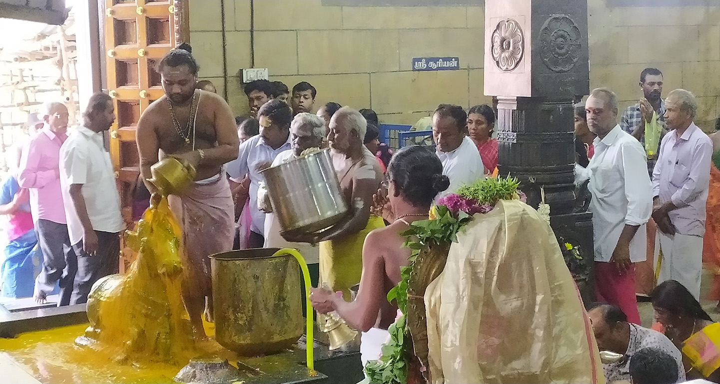 - சங்கமேஸ்வரர் முன் உள்ள நந்தியம் பெருமானுக்கு பல்வேறு திரவியங்களால் சிறப்பு அபிஷேகம் நடைபெற்றது.