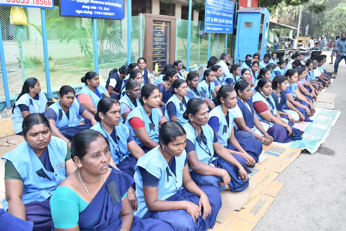 அரசு மருத்துவமனை வளாகத்தில் 100-க்கும் மேற்பட்ட ஒப்பந்த ஊழியர்கள் காத்திருப்பு போராட்டத்தில் ஈடுபட்டு வருகின்றனர்.