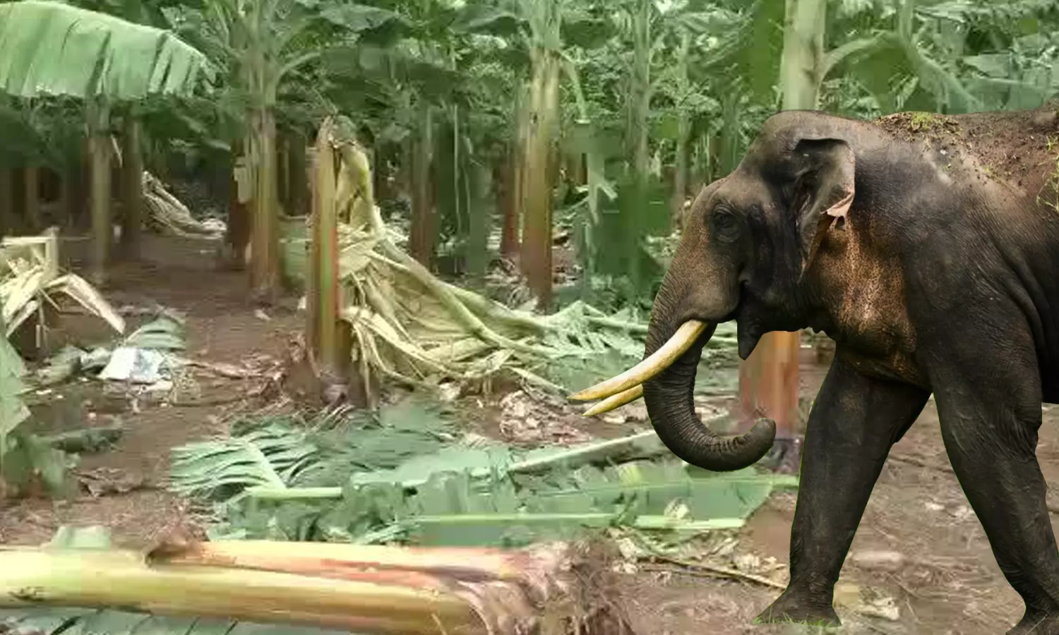 வாழைத் தோட்டத்துக்குள் புகுந்து சேதப்படுத்திய காட்டு யானைகளால் பரபரப்பு