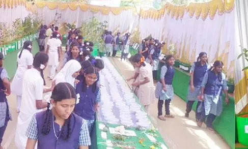 தருமபுரி அரசு மகளிர் பள்ளியில் கண்காட்சி: பாரம்பரிய மரக்கன்றுகள் வைத்து மாணவிகள் அசத்தல்