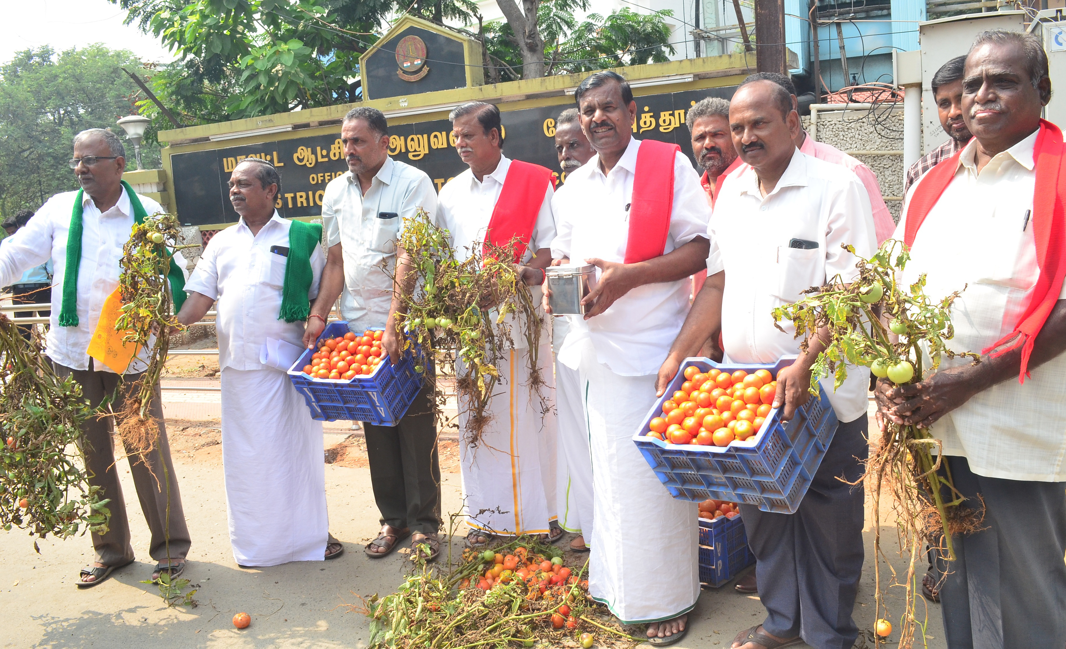 ரூ.5க்கு தக்காளி விற்று விவசாயிகள் போராட்டம்