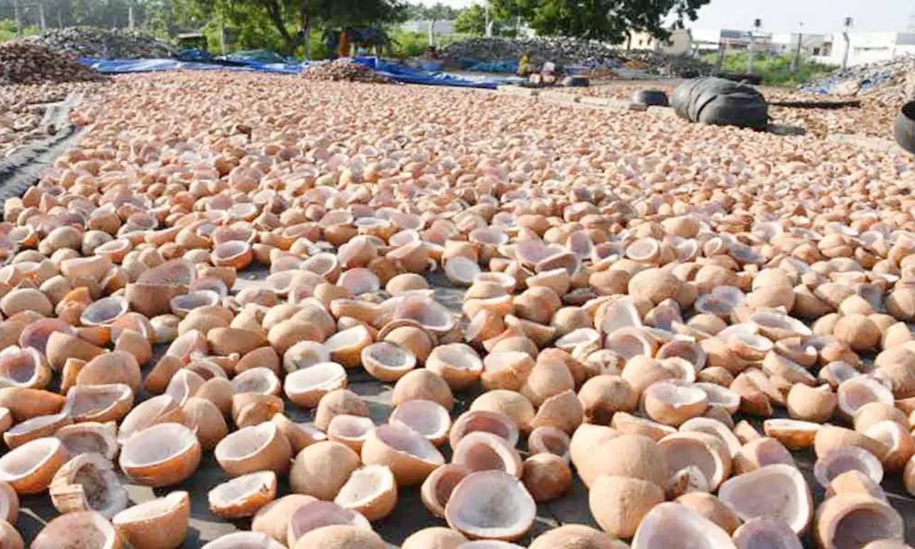தேங்காயை காயவைத்து கொப்பரையாக விற்பனை செய்ய ஆர்வம் காட்டும் விவசாயிகள்