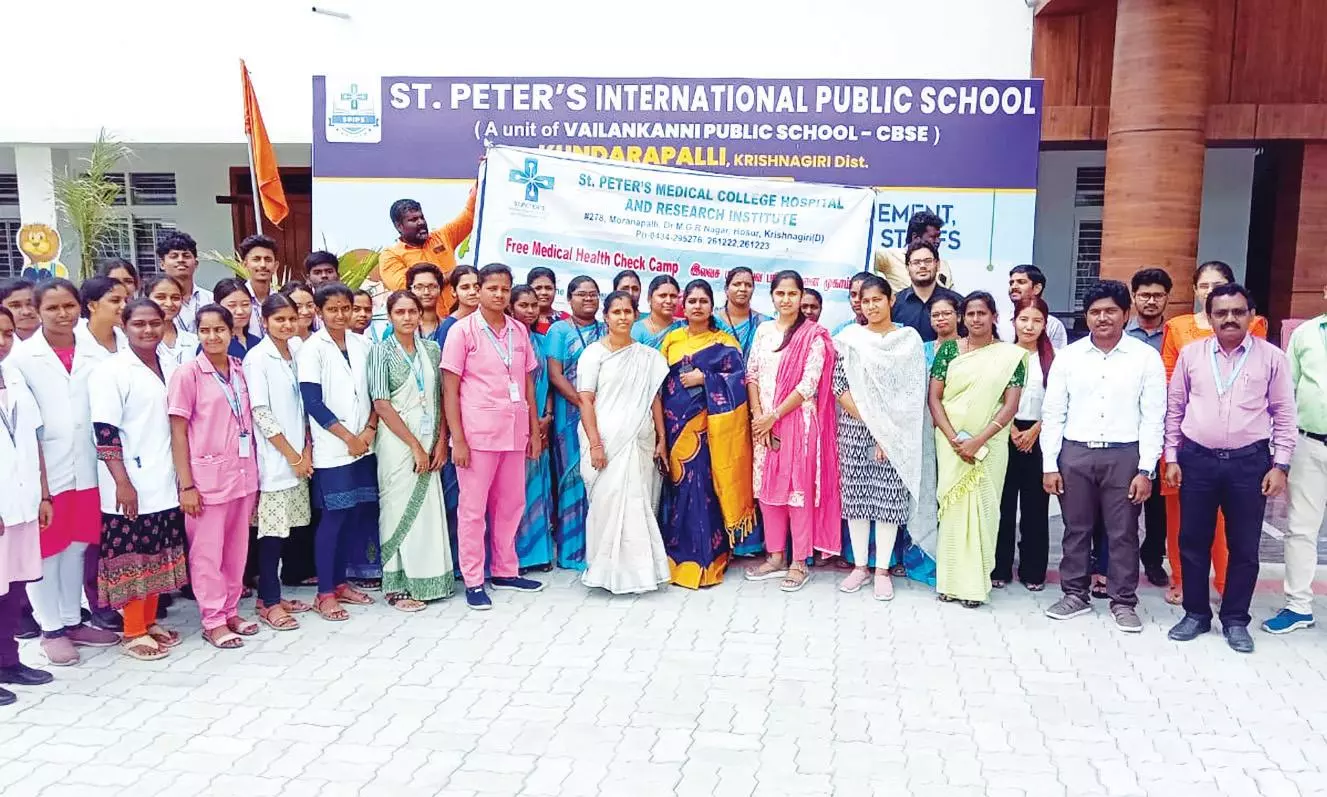 ஓசூர் செயின்ட் பீட்டர் மருத்துவ கல்லூரி மற்றும் ஆராய்ச்சி மையம் சார்பில் குந்தாரப்பள்ளியில் உள்ள செயின்ட் பீட்டர்ஸ் இன்டர்நேஷனல் பள்ளிக் பள்ளியில் இலவச மருத்துவ முகாம் நடந்தது. இதில் மாணவர்கள், பெற்றோர்கள், ஆசிரிய, ஆசிரியைகள் பொதுமக்கள் கலந்து கொண்டனர்.