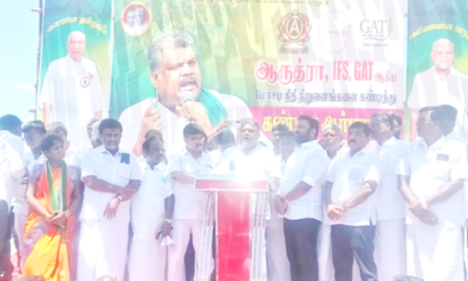 நிதி நிறுவனங்கள் மோசடி- காஞ்சிரத்தில் ஜி.கே.வாசன் ஆர்ப்பாட்டம்