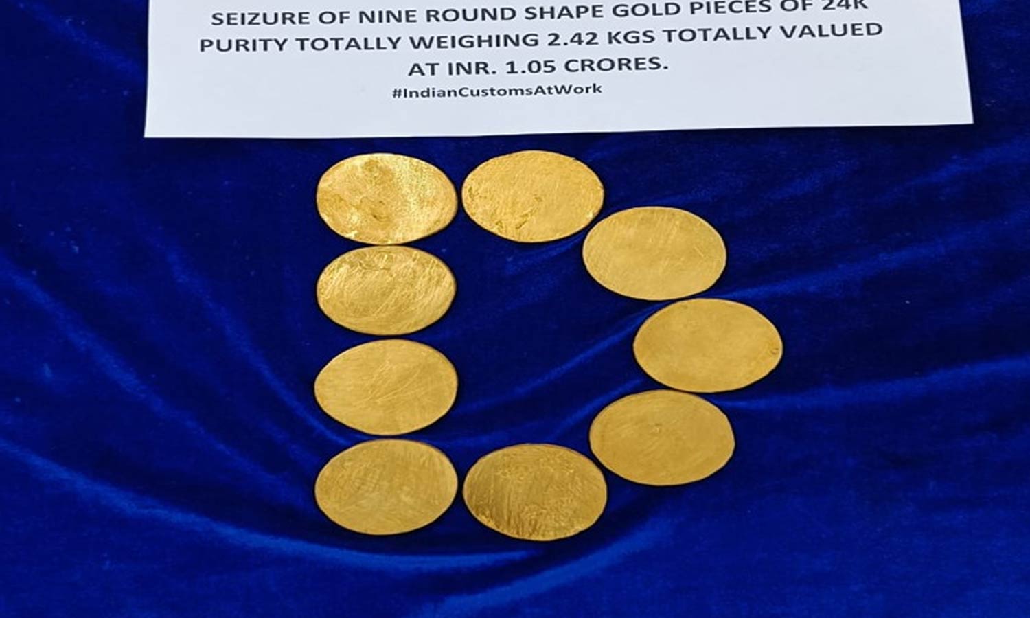 அவற்றை பறிமுதல் செய்த அதிகாரிகள் ஆய்வு செய்தனர். 24 காரட்டில் 2.42 கிலோ எடையில் இருந்த அந்த தங்கம் 1 கோடியே 5 லட்சம் ரூபாய் என மதிப்பிடப்பட்டுள்ளது. இதுகுறித்து தொடர் விசாரணை நடைபெற்று வருவதாக சென்னை சர்வதேச விமான நிலைய சுங்கத்துறை முதன்மை ஆணையர் மேத்யூ ஜாலி தெரிவித்துள்ளார்.