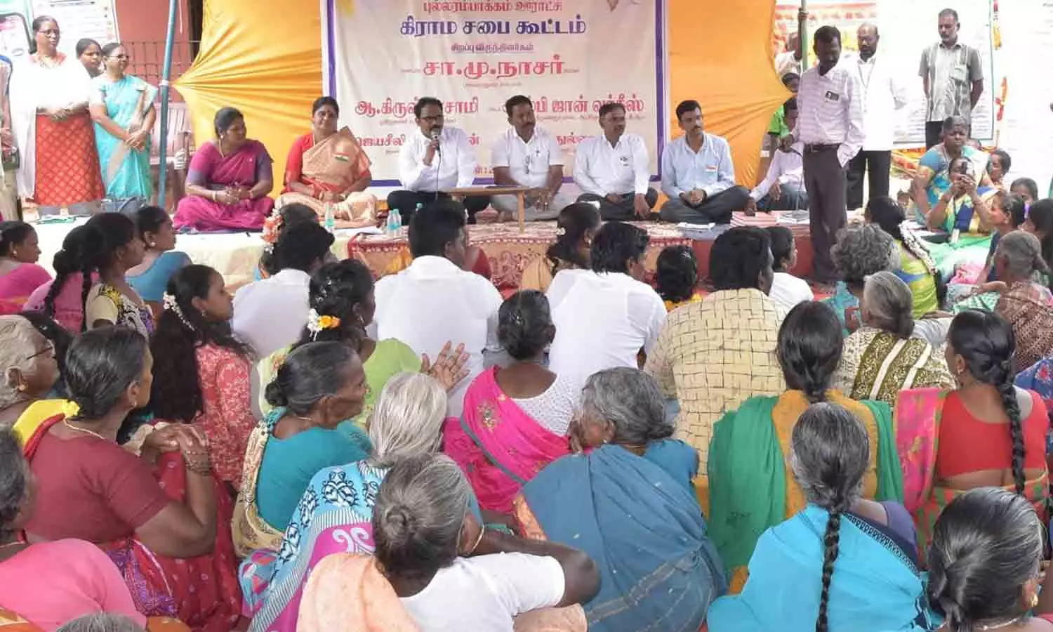 - கிராம சபை கூட்டத்திற்கு ஊராட்சி மன்ற தலைவர் தமிழ்வாணன் தலைமை தாங்கினார்.