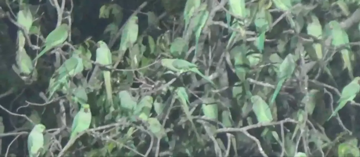 - மேளதாளங்களின் இசை, பொதுமக்களின் சப்தம் உள்ளிட்ட கடும் இரைச்சலால் இரவில் மரங்களில் தஞ்சமடைய சென்ற பச்சைக்கிளிகள் பல மணி நேரம் பரிதவித்தன.
