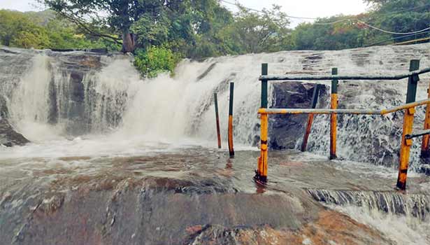அருவியில் நீர்வரத்தை படத்தில் காணலாம்.