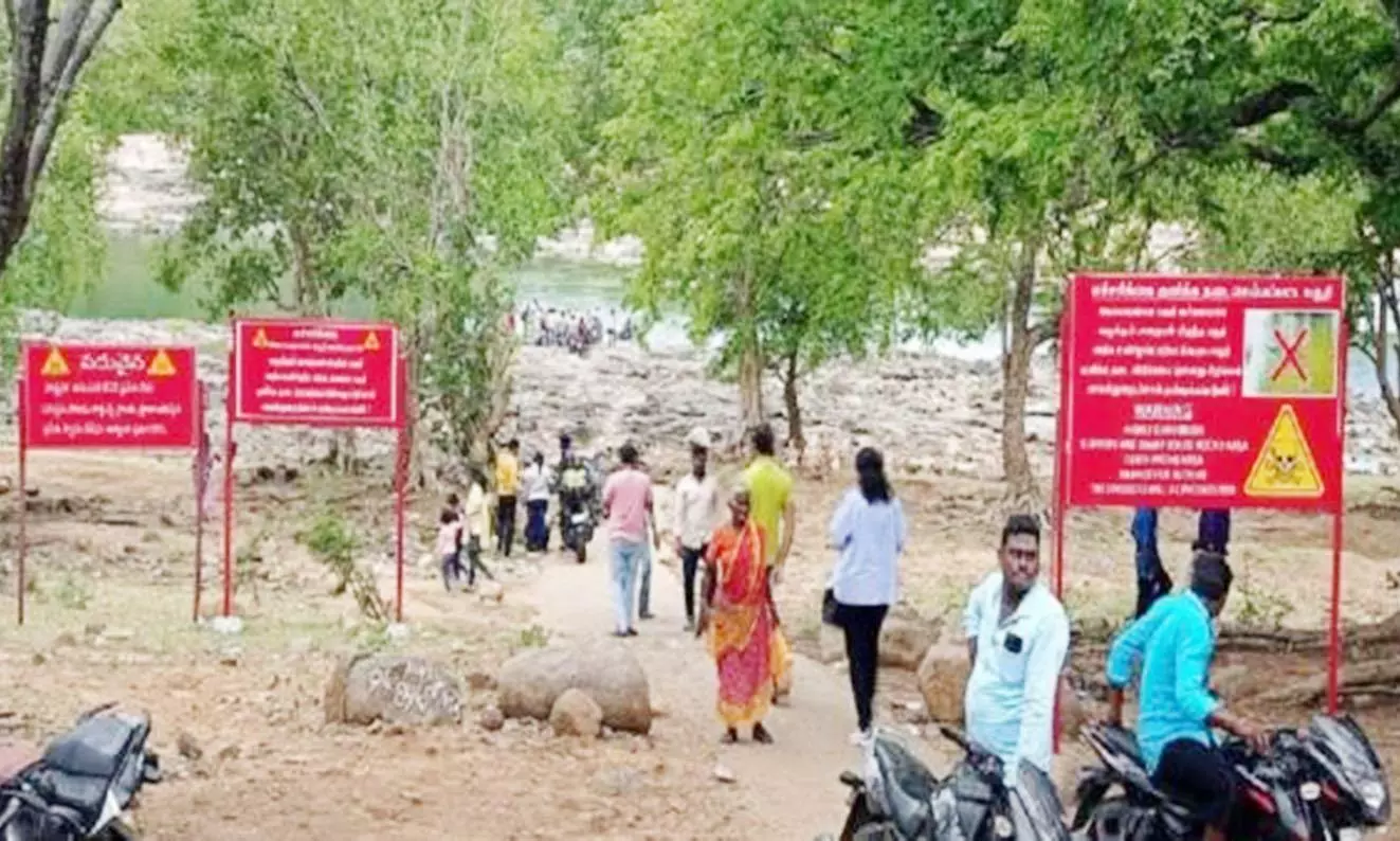 இங்கு குளிக்கவோ, ஆற்றில் இறங்கவோ கூடாது' என 5-க்கும் மேற்பட்ட மொழிகளில் எச்சரிக்கை பலகைகள் அமைக்கப்பட்டுள்ளன.