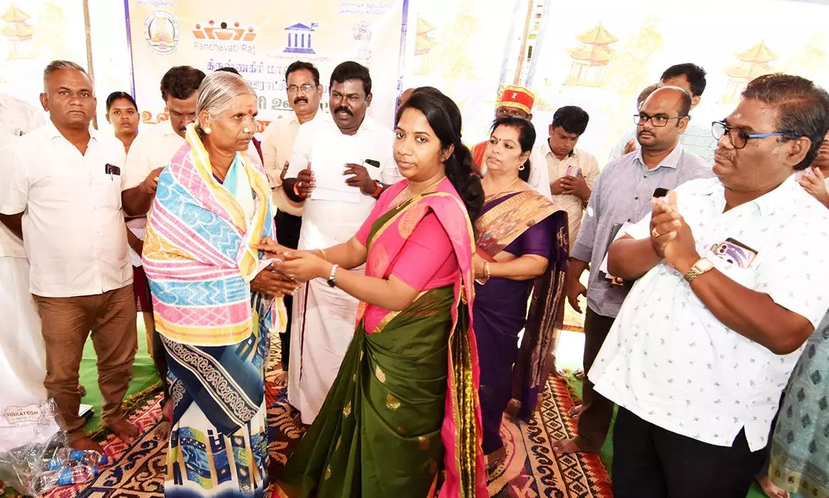 தொடர்ந்து கொரோனா பெருந்தொற்று காலம் முதல் தற்போது முடிவடைந்து நம்ம ஊரு சூப்பர் இயக் கத்தில் தங்களை முழுமை யாக ஈடுபடுத்தி சிறப்பாக சேவை புரிந்த தூய்மை பணியாளர்கள் மற்றும் கிராம ஊராட்சியின் வளர்ச் சியில் முதுகெ லும்பாக திகழும் மகளிர் சுய உதவிக் குழுக்களை ஊக்கு விக்கும் பொருட்டு, சிறப் பாக செயல்பட்ட மகளிர் சுய உதவிக்குழுவினர்களுக்கு பொன்னடை அணிவித்து, கலெக்டர் வாழ்த்து தெரிவித்தார்.