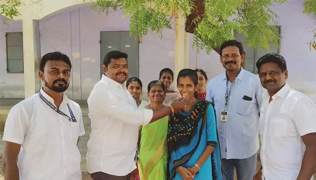 இவருக்கு பள்ளி தலைமை ஆசிரியர் சரஸ்வதி மற்றும் சக ஆசிரியர்கள், மாணவிகள் வாழ்த்து தெரிவித்தனர்.