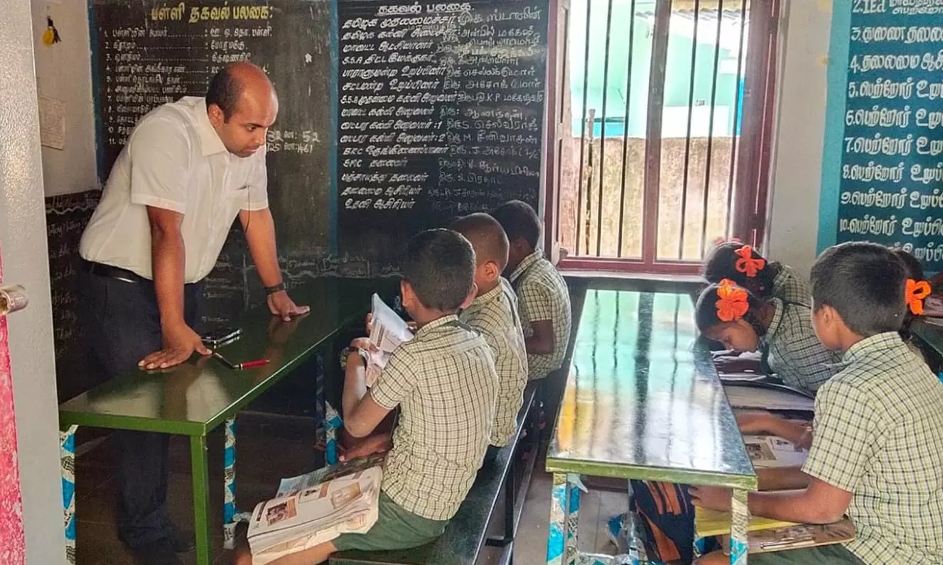 கிருஷ்ணகிரி அருகே மோரமடுகு ஊராட்சி ஒன்றிய துவக்க பள்ளியை மாவட்ட கலெக்டர் தீபக்ஜேக்கப் ஆய்வு மேற்கொண்டு மாணவர்களின் கல்வி திறனை கேட்டறிந்தார்.