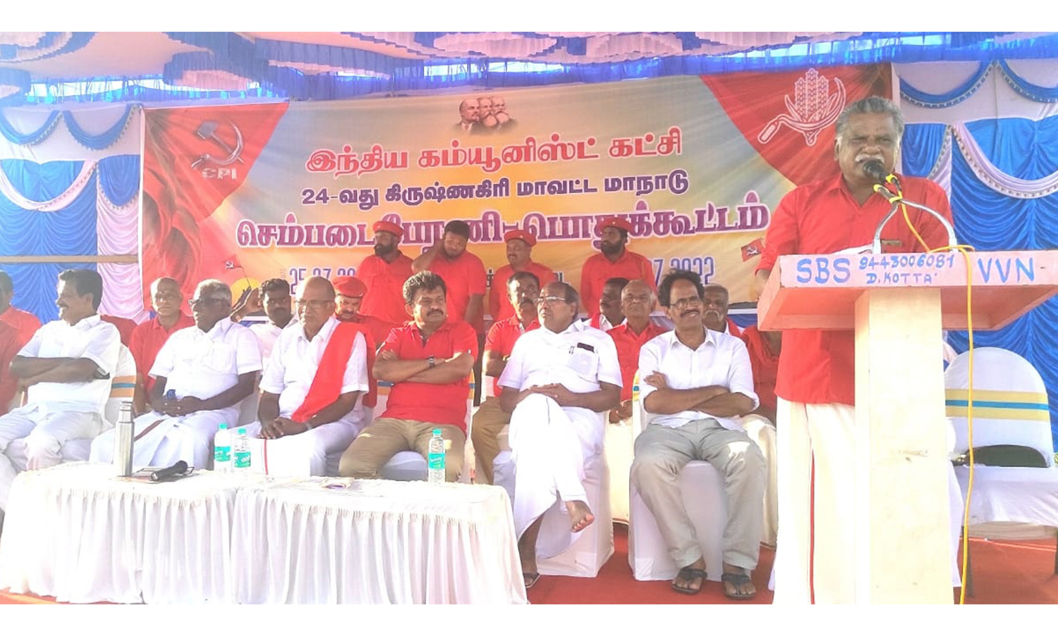 கிருஷ்ணகிரி மாவட்டம் தேன்கனிக்கோட்டையில் இந்திய கம்யூனிஸ்ட் கட்சி 24வது மாவட்ட மாநாடு பேரணி மற்றும் பொதுக்கூட்டம் பஸ் நிலையத்தில் நடைபெற்றது.