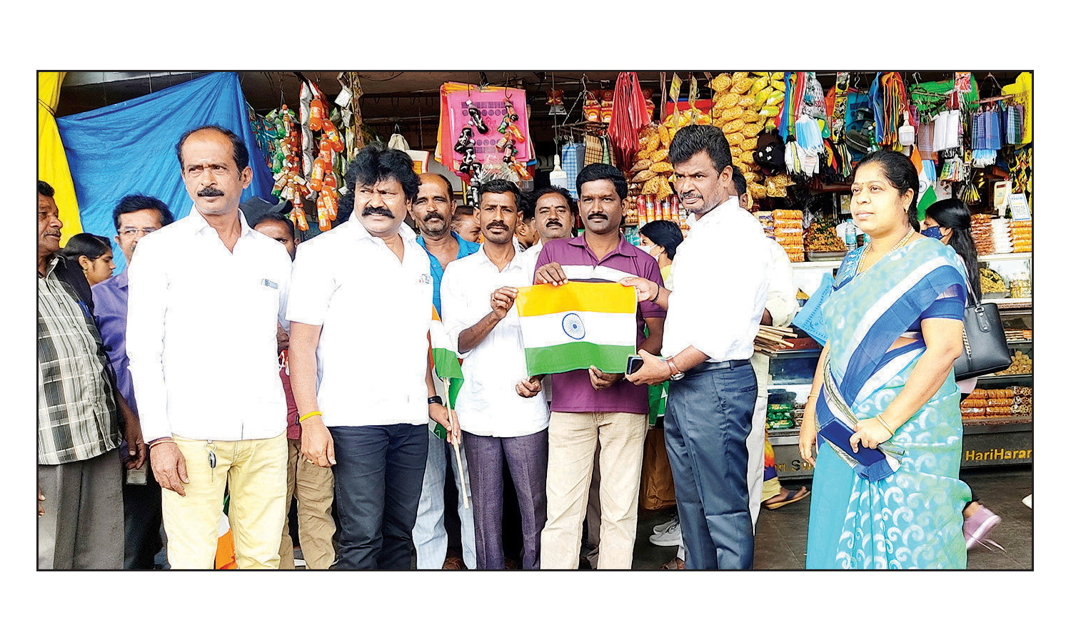 நாட்டின் 75வது சுதந்திர தினவிழாவை முன்னிட்டு, மக்கள் அனைவரும் தங்கள் வீடுகளில் தேசியக்கொடி ஏற்ற வேண்டும் என்று விழிப்புணர்வு ஏற்படுத்தும் வகையில் ஓசூர் மாநகராட்சி சார்பில், பஸ் நிலையத்தில் இன்று காலை பொதுமக்கள் மற்றும் பயணிகளுக்கு தேசியக்கொடி வழங்கி விழிப்புணர்வு ஏற்படுத்தப்பட்டது. இந்த நிகழ்ச்சியில் மாநகாட்சி ஆணையாளர் பாலசுப்பிரமணியன் கொடி களை வழங்கி நிகழ்ச்சியை தொடங்கிவைத்தார்.