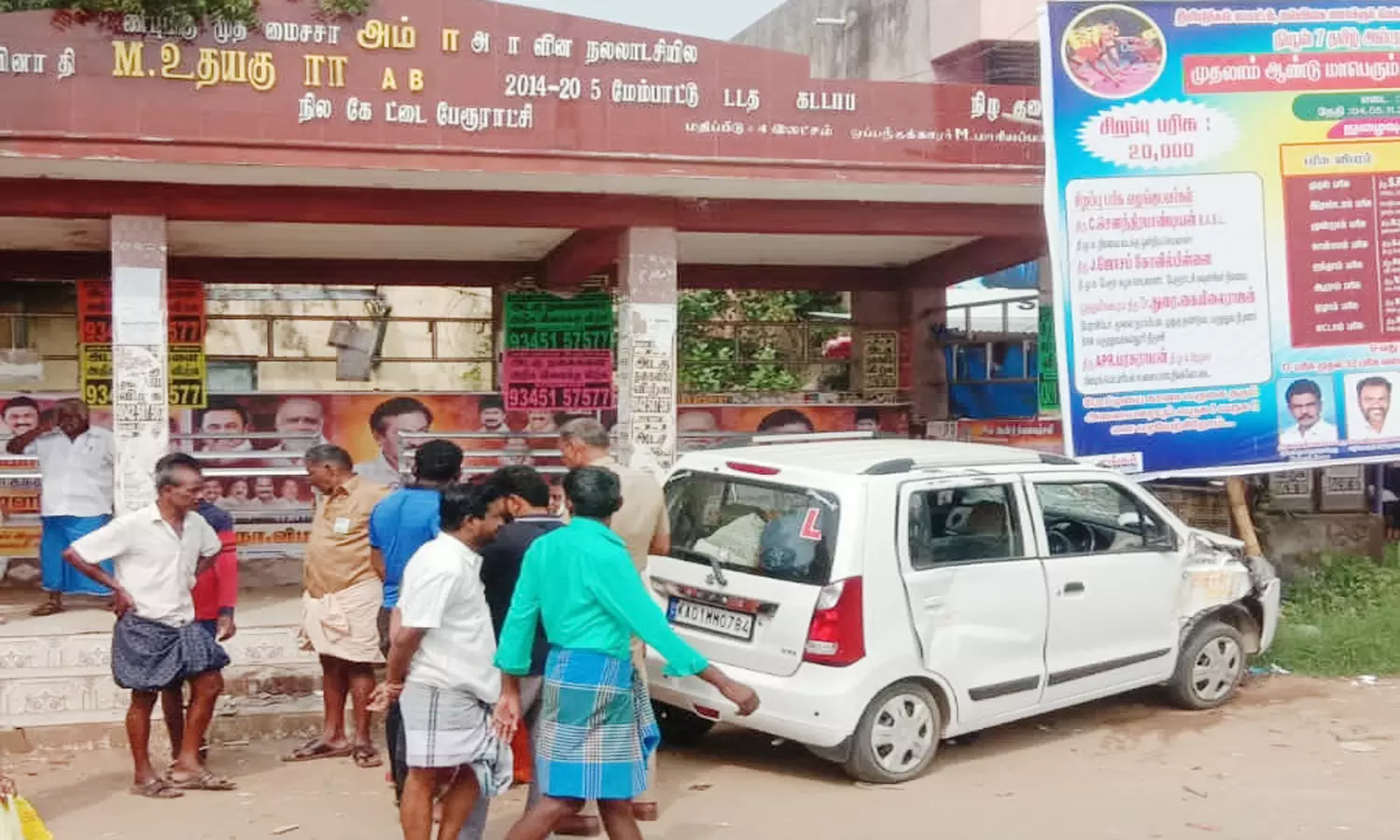 நேற்று தீபாவளி முடிந்த அடுத்த நாள் என்பதாலும், விடுமுறை தினம் என்பதால் மாலை 4 மணியளவில் சற்று ஆட்கள் நடமாட்டம் குறைவாக இருந்தது. அப்போது மதுரையில் இருந்து தாறுமாறாக வந்த கார் திடீரென நிலை தடுமாறி பயணிகள் நிழற்குடைக்குள் புகுந்தது. அந்த நேரம் அங்கு யாரும் ஆட்கள் இல்லாததால் பெரும் விபத்து தவிர்க்கப்பட்டது. இந்த சம்பவத்தால் அப்பகுதியில் பரபரப்பு ஏற்பட்டது.