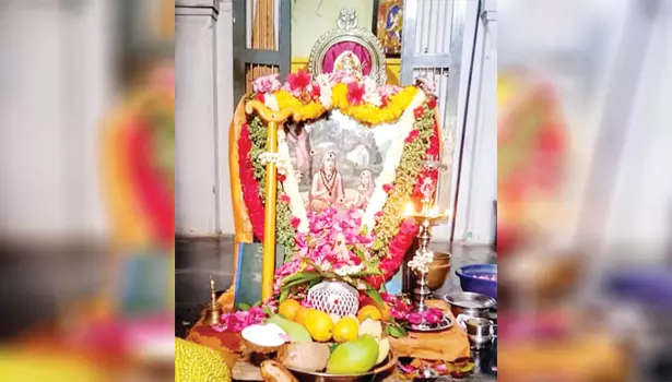 ஜெயந்தி விழாவை முன்னிட்டு, சங்கரர் படத்திற்கு சிறப்பு அலங்காரம் செய்யப்பட்டிருந்த காட்சி.