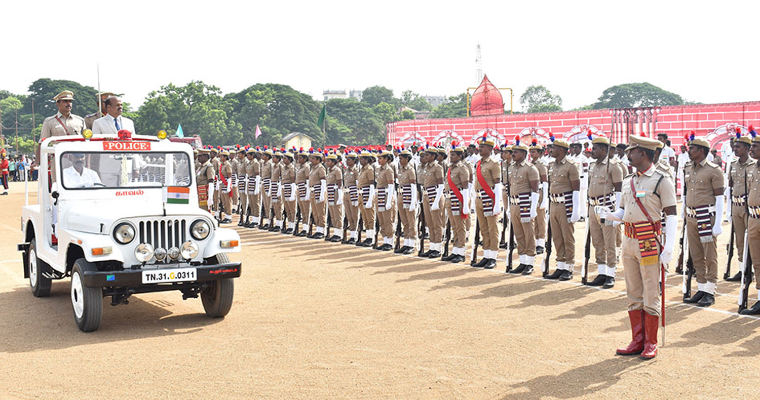 75 ஆவது சுதந்திர தினத்தையோட்டி கடலூர் அண்ணா விளையாட்டு மைதானத்தில் போலீசாரின் அணிவகுப்பு நிகழ்ச்சியை கலெக்டர் பாலசுப்ரமணியம் பார்வையிட்டார். அருகில் போலீஸ் சூப்பிரண்டு சக்தி கணேசன் உள்ளார்.