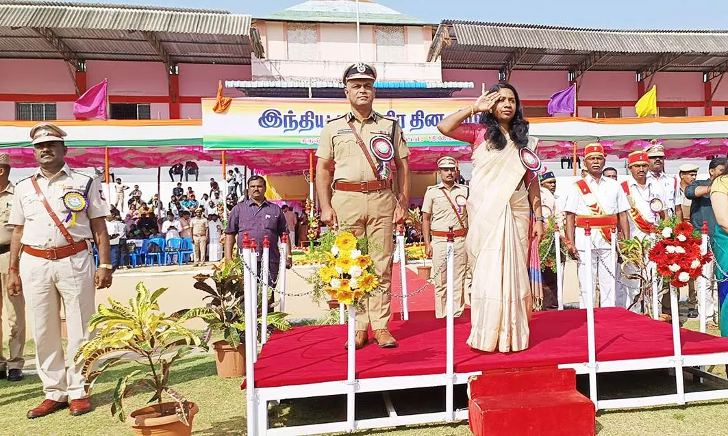இந்த விழாவிற்கு கலெக்டர் சரயு தலைமை தாங்கி தேசிய கொடியை ஏற்றி வைத்தார். பின்னர் அவர் காவல்துறை அணிவகுப்பை ஏற்றுக் கொண்டார்.
