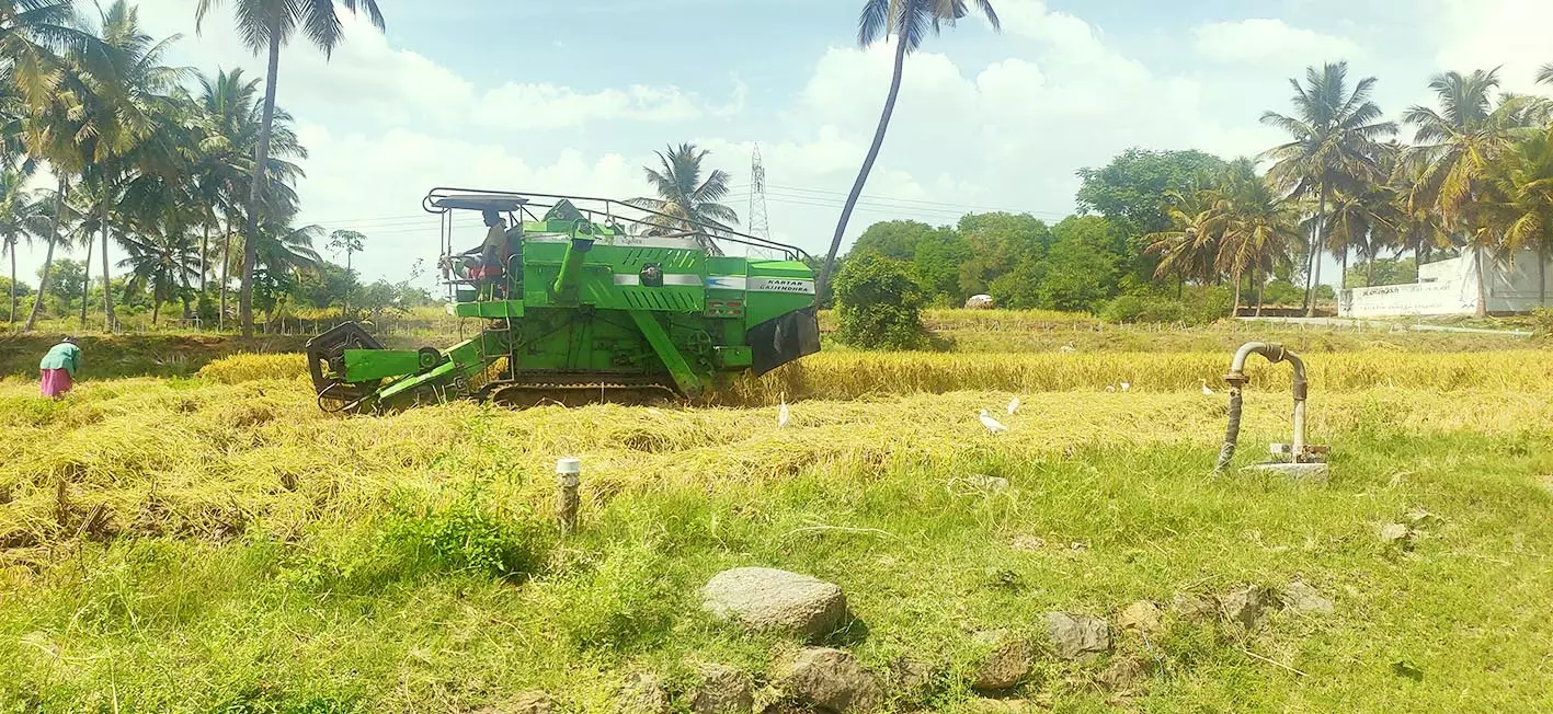 கிருஷ்ணகிரி மாவட்டம், சூளகிரி சுற்றுவட்டார பகுதியில் விவசாயிகள் அதிக அளவு நெல் சாகுபடி செய்துள்ளனர். தற்போது மேடுப்பள்ளி பகுதியில் வயல்களில் விளைந்த நெல்பயிரை எந்திரம் மூலம் அறுவடை செய்த போது எடுத்தபடம்.