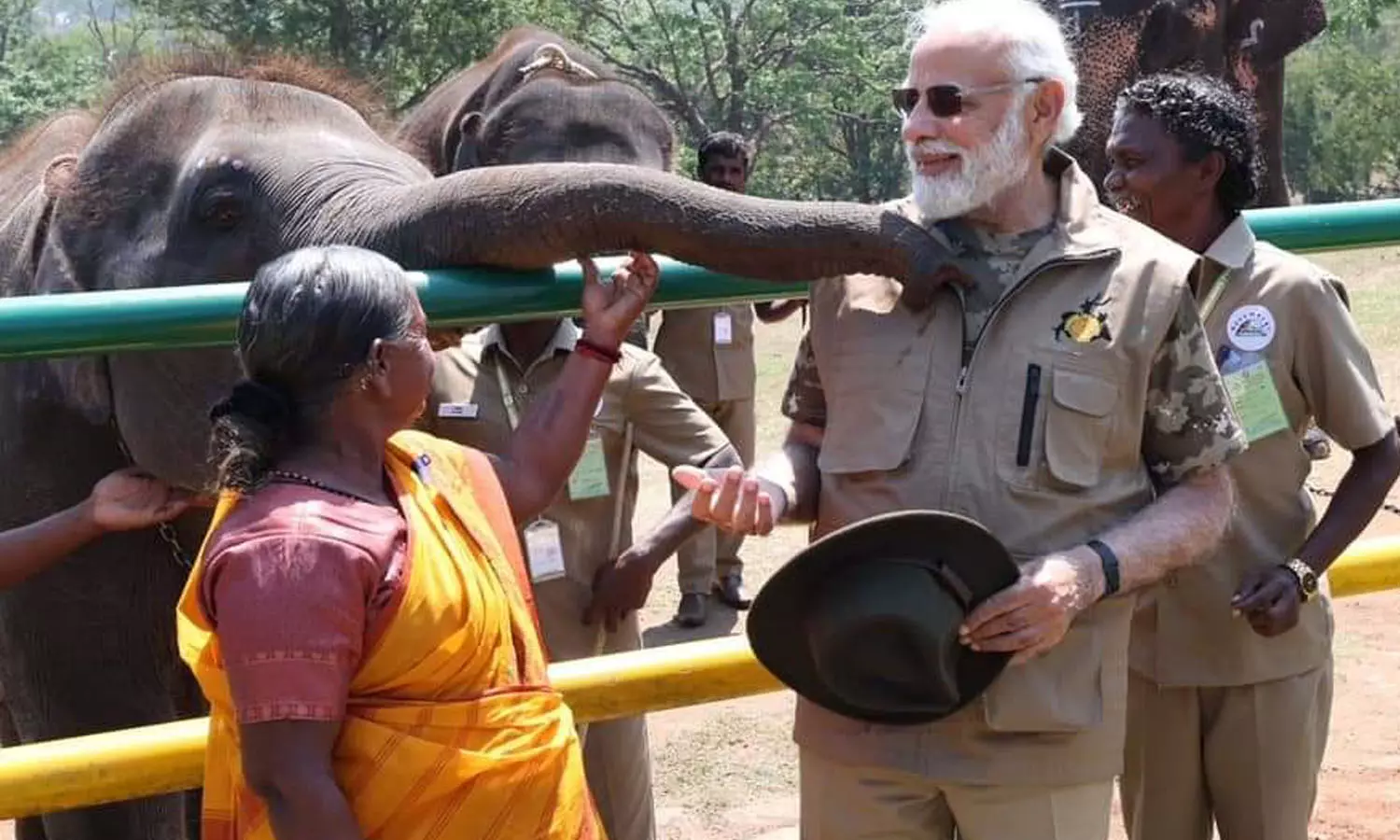 நீலகிரி மாவட்டம் முதுமலையில் உள்ள தெப்பக்காடு வளர்ப்பு யானைகள் முகாமுக்கு இன்று பிரதமர் மோடி வந்தார்.