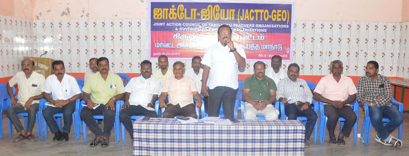 கிருஷ்ணகிரியில் ஜாக்டோ - ஜியோ சார்பில் மாவட்ட அளவிலான போராட்ட மாநாடு நடந்தது.