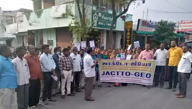 குமாரபாளையத்தில் ஜேக்டோ-ஜியோ சங்கத்தினர் ஆர்ப்பாட்டம்