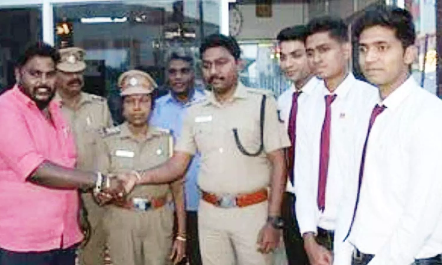 - ஜஸ்வின், நவீன், அஜ்மல் ஆகியோரின் நோ்மையைக் காவல் துறையினா் உள்ளிட்டோா் பாராட்டினா்