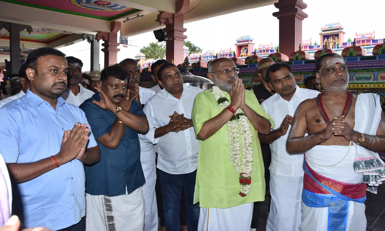 - பழனிக்கு வந்த அவருக்கு தண்டபாணி நிலையத்தில் வைத்து போலீஸ் மற்றும் கோவில் நிர்வாகம் சார்பில் சிறப்பு மரியாதை அளிக்கப்பட்டது.