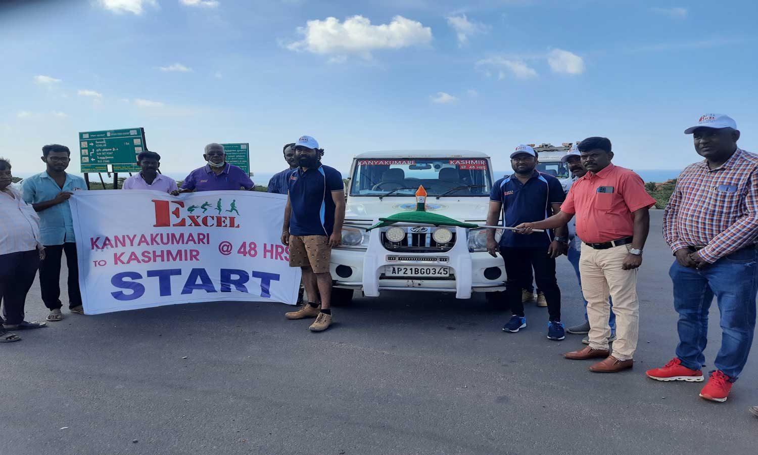 கன்னியாகுமரியில் இருந்து காஷ்மீருக்கு 3600 கி.மீட்டர் தூரத்தை 48 மணி நேரத்தில் காரில் கடக்கும் சாதனை பயணம்