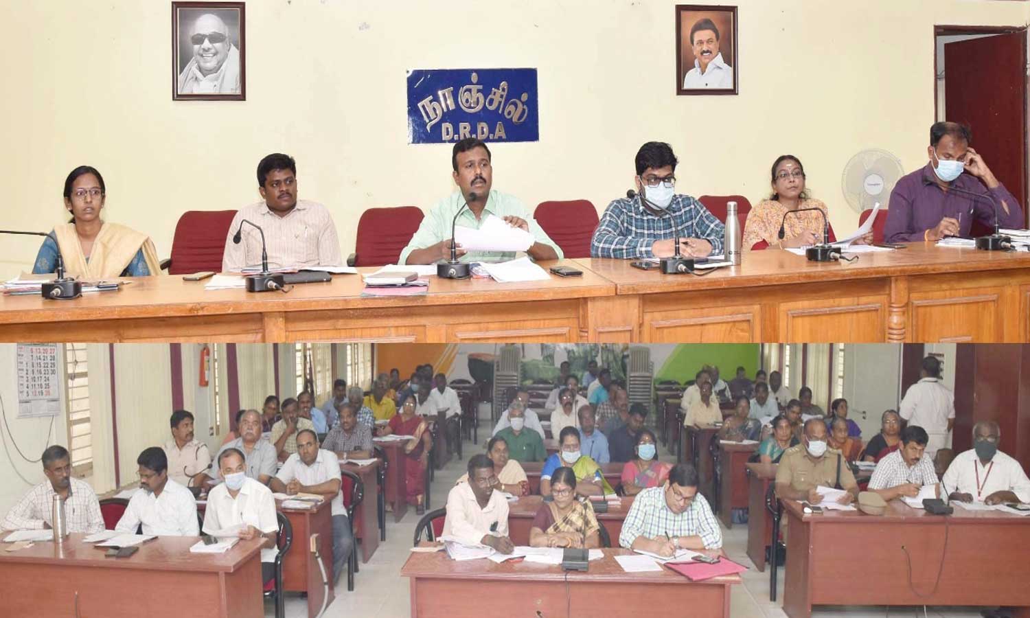 இக்கூட்டத்தில், மாவட்ட வருவாய் அலுவலர் சிவப் பிரியா, மாவட்ட வன அலுவலர் இளையராஜா, பத்மநாபபுரம் சப்-கலெக்டர் அலர்மேல் மங்கை, நாகர்கோவில் மாநகராட்சி ஆணையர் ஆனந்த் மோகன், திட்ட இயக் குநர்கள் ச.சா.தன பதி (ஊரக வளர்ச்சி முகமை), மைக்கேல் அந்தோணி பெர்னான்டோ (மக ளிர் திட்டம்), மாவட்ட கலெக்டரின் நேர்முக உதவியாளர் (பொது) வீராசாமி, நாகர்கோவில் வருவாய் கோட்டாட்சியர் சேதுராமலிங்கம், தனித் துணை ஆட்சியர் (ச.பா.தி) திருப்பதி உட்பட அனைத் துத்துறை அலுவலர்கள் கலந்து கொண்டனர்.