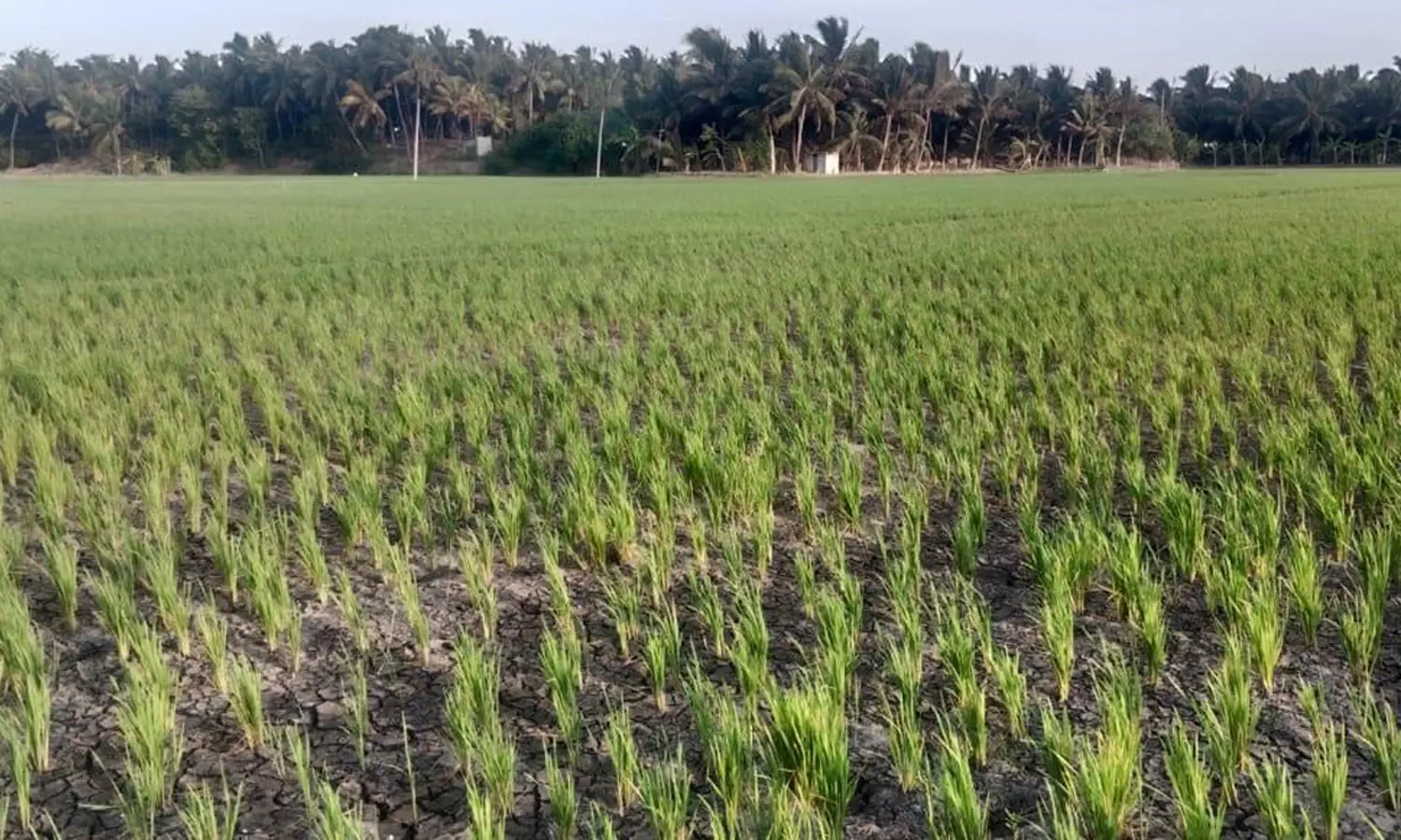 அகஸ்தீஸ்வரம் பகுதியில் தண்ணீர் இன்றி கருகும் நெற்பயிர்கள்
