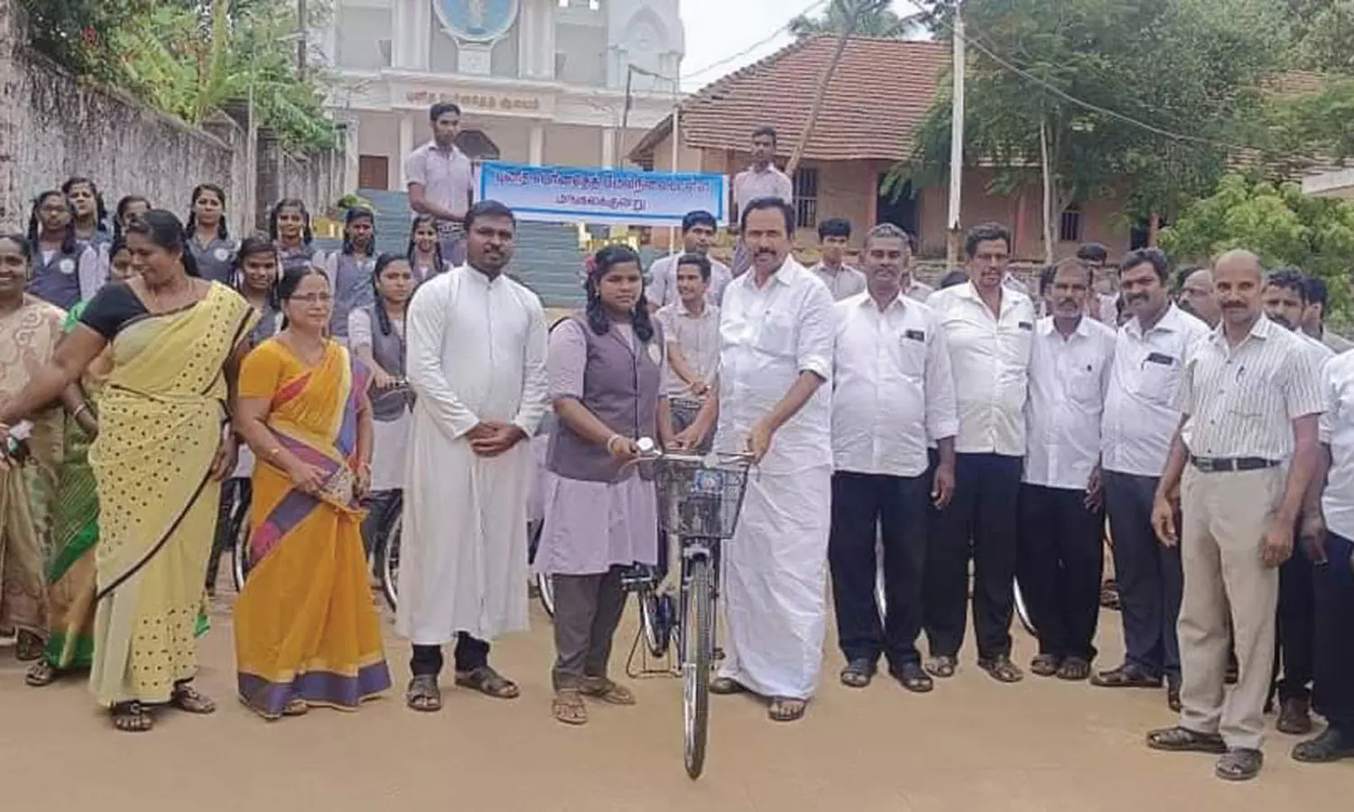 மங்கலகுன்று புனித பெர்னதெத் மேல்நிலைப்பள்ளியில் அரசின் சார்பில் இலவச மிதிவண்டிகள் வழங்கும் விழா நடைபெற்றது. பள்ளி உதவி தலைமை ஆசிரியர் கிரேசி எவாஞ்சல் தலைமை தாங்கினார். விழாவில் ராஜேஷ்குமார் எம்.எல்.ஏ. சிறப்பு விருந்தினராக கலந்துகொண்டு மாணவ-மாணவிகளுக்கு இலவச மிதிவண்டிகளை வழங்கினார்.