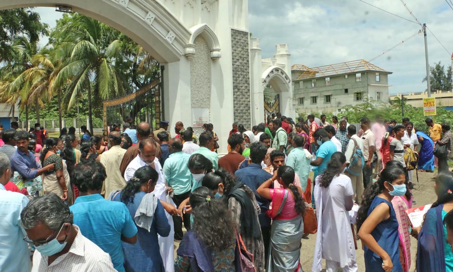 தேர்வு எழுத விண்ணப்பித்தவர்கள் மதியம்தான் தேர்வு என்றாலும் காலையிலேயே தேர்வு மையத்திற்கு வர தொடங்கினார்கள். இதனால் தேர்வு மையங்களின் முன்பு கூட்டம் அலைமோதியது. தேர்வு எழுத வந்த பெண்களை அவரது பெற்றோர் மற்றும் உறவினர்கள் அழைத்து வந்திருந்தனர்.